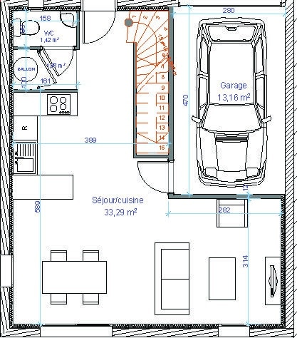 Mr et Mme D souhaitait une maison ossature bois à Mérignac de ville bioclimatique et à énergie positive. Un plan R+1 optimisé faisant la part belle à l’espace vie baigné de lumière par une baie coulissante prolongé d’une terrasse.